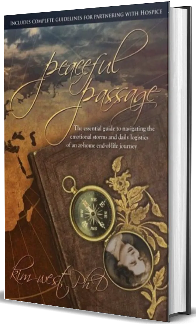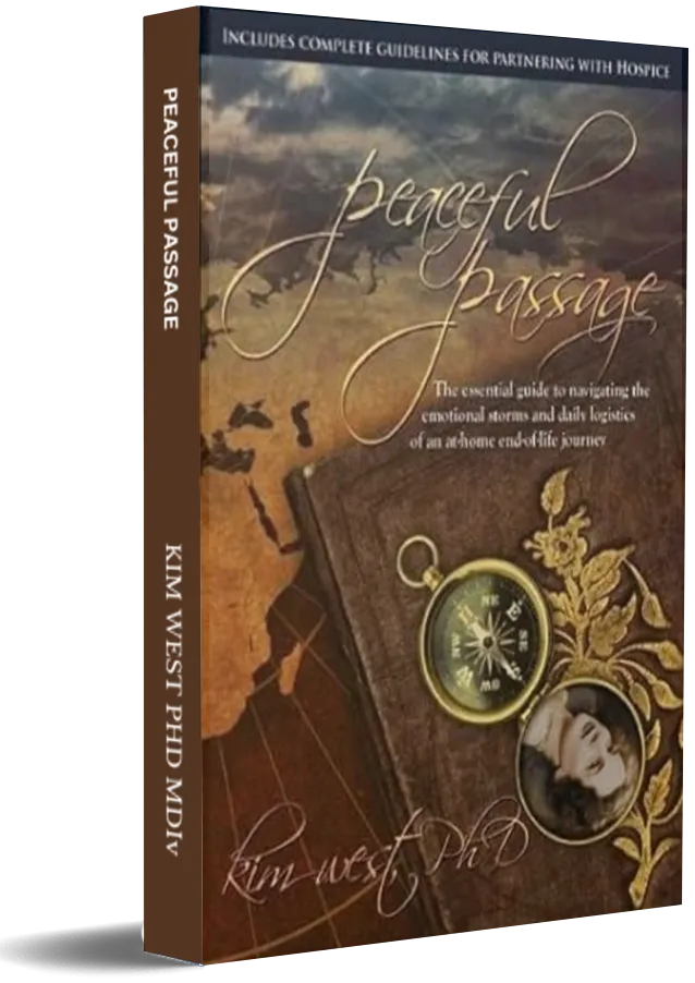 Kim West hold a PhD in Clinical Pastoral Counseling and an M.Div in Counseling and Family. Peaceful Passage represents a merging of her years of life and counseling experience with new skills acquired as the primary caregiver during her mother's final journey.